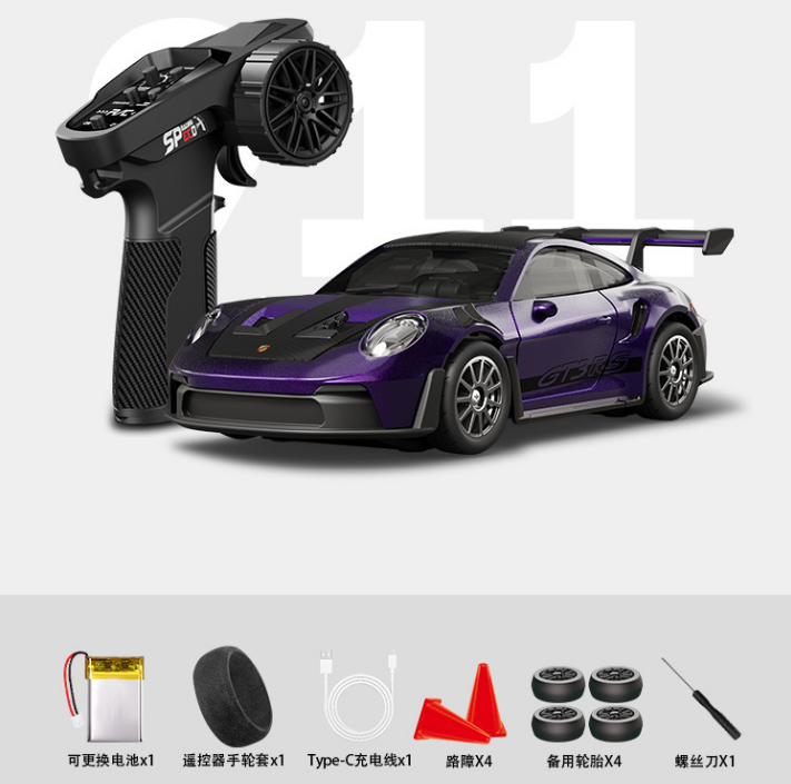 HStar D43-01Q 1/43 Scale 4WD Alloy RC Drift Car Porsche 911 with Gyro & LED Lights