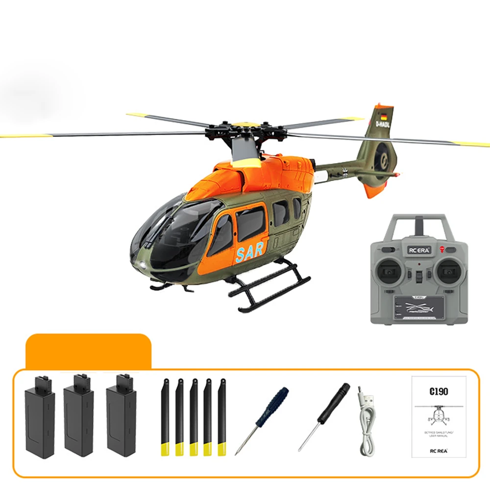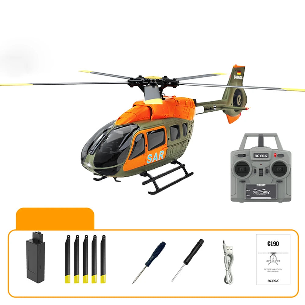 Take flight with the COOLBANK & RC ERA C190 RC Helicopter, designed for both beginners and experienced pilots. This high-performance, 1:30 scale H145 replica features a 6-channel, flybarless design that maximizes power, control, and stability.