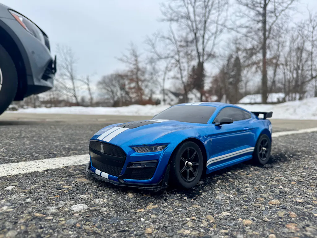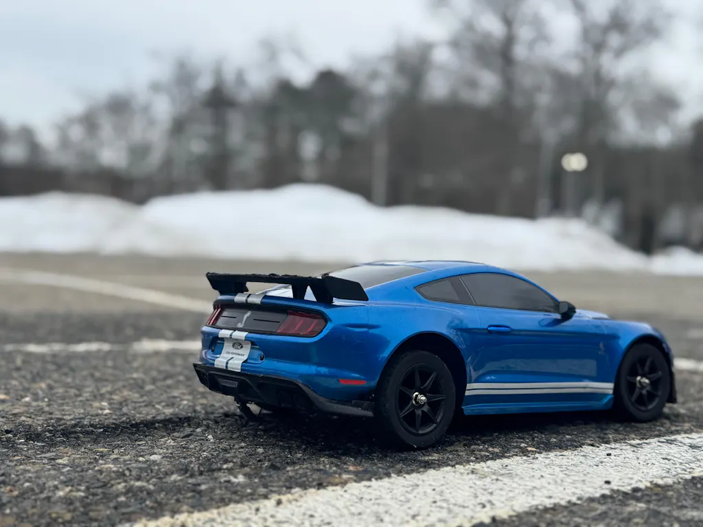 The precision-molded Shelby GT500 Mustang body comes factory-finished in blue and mounted on a rigid 1/10-scale chassis designed for stability and control. A 6kg digital servo ensures responsive steering, while the aluminum motor heatsink helps keep temperatures under control during aggressive driving sessions.